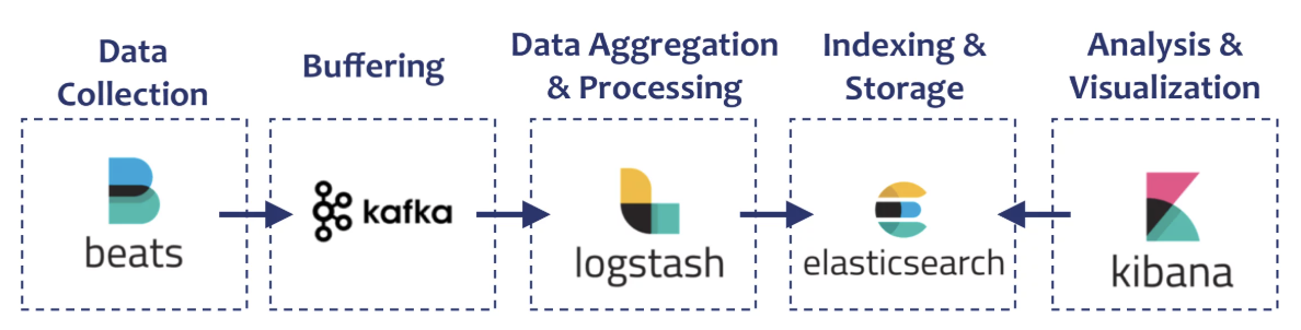 在日志存储领域,ElasticSearch 是一个广泛使用的解决方案,几乎已经是事实上的标准,接触过的同学相信一定对术语 ELK(ElasticSearch、Logstash、Kibana) 不陌生,它们都是 ElasticSearch 公司的产品,加上其用于收集指标日志的 Beats 系列组件,形成了一套完整的日志处理解决方案。