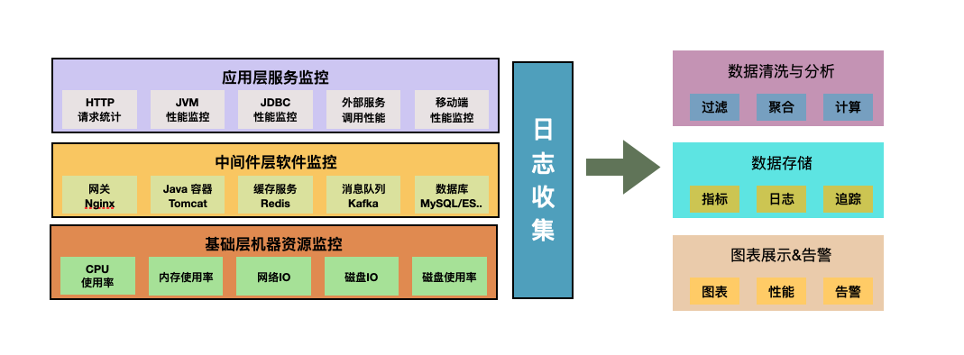 做到对基础、中间件和应用层的指标、日志、链路追踪的整体监控。