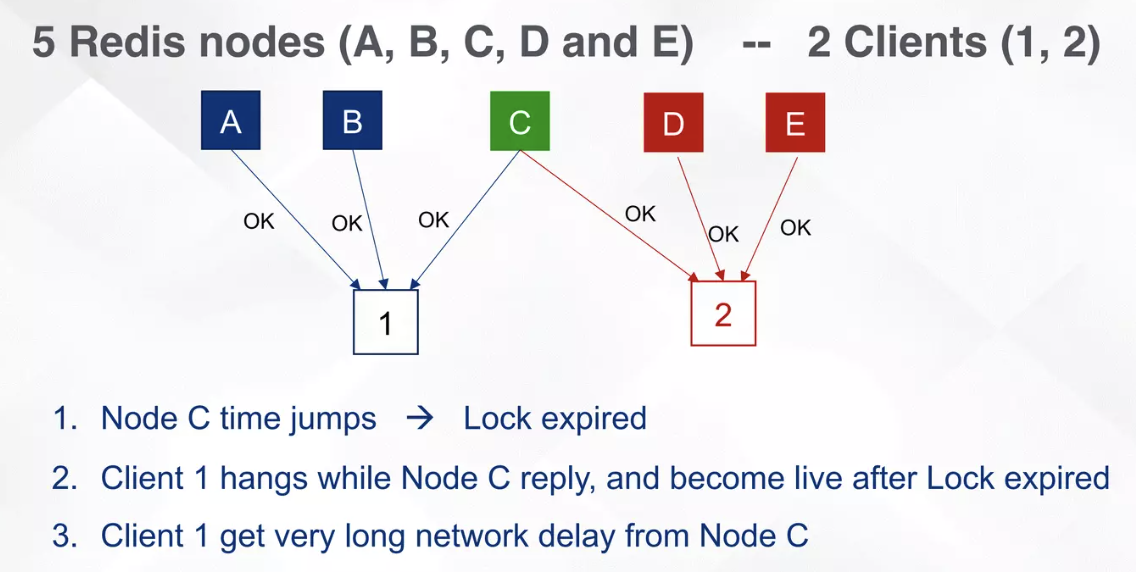 - C 节点的系统时钟向前发生了偏移,这会导致 C 节点的锁提前过期。